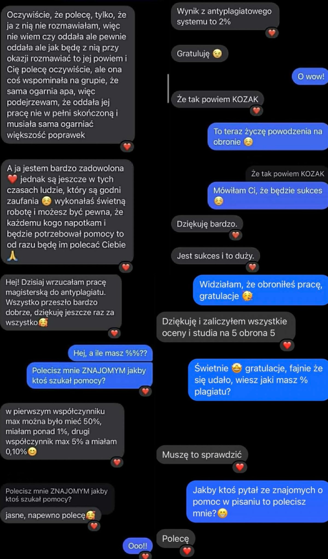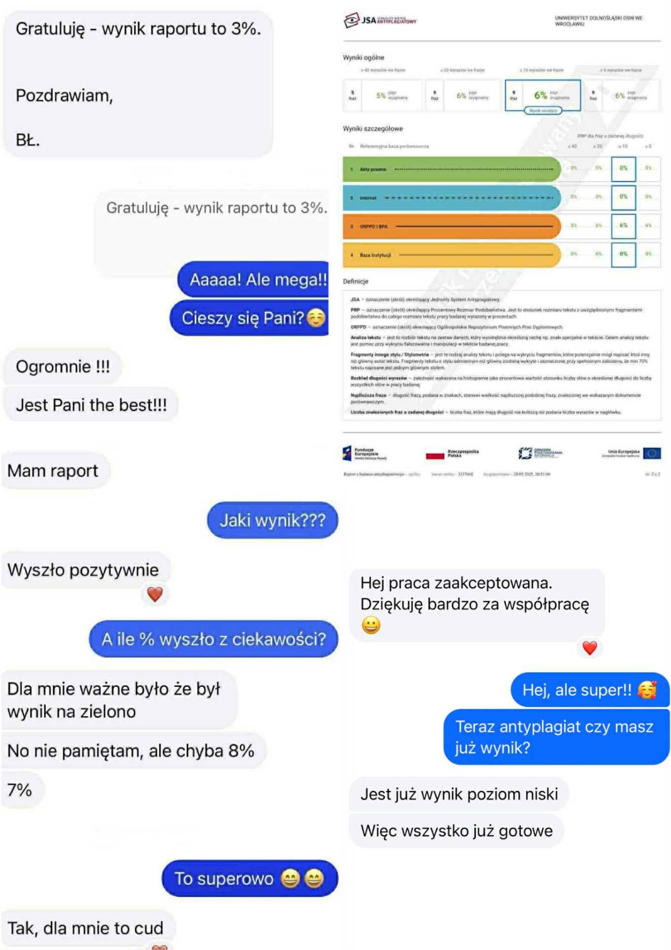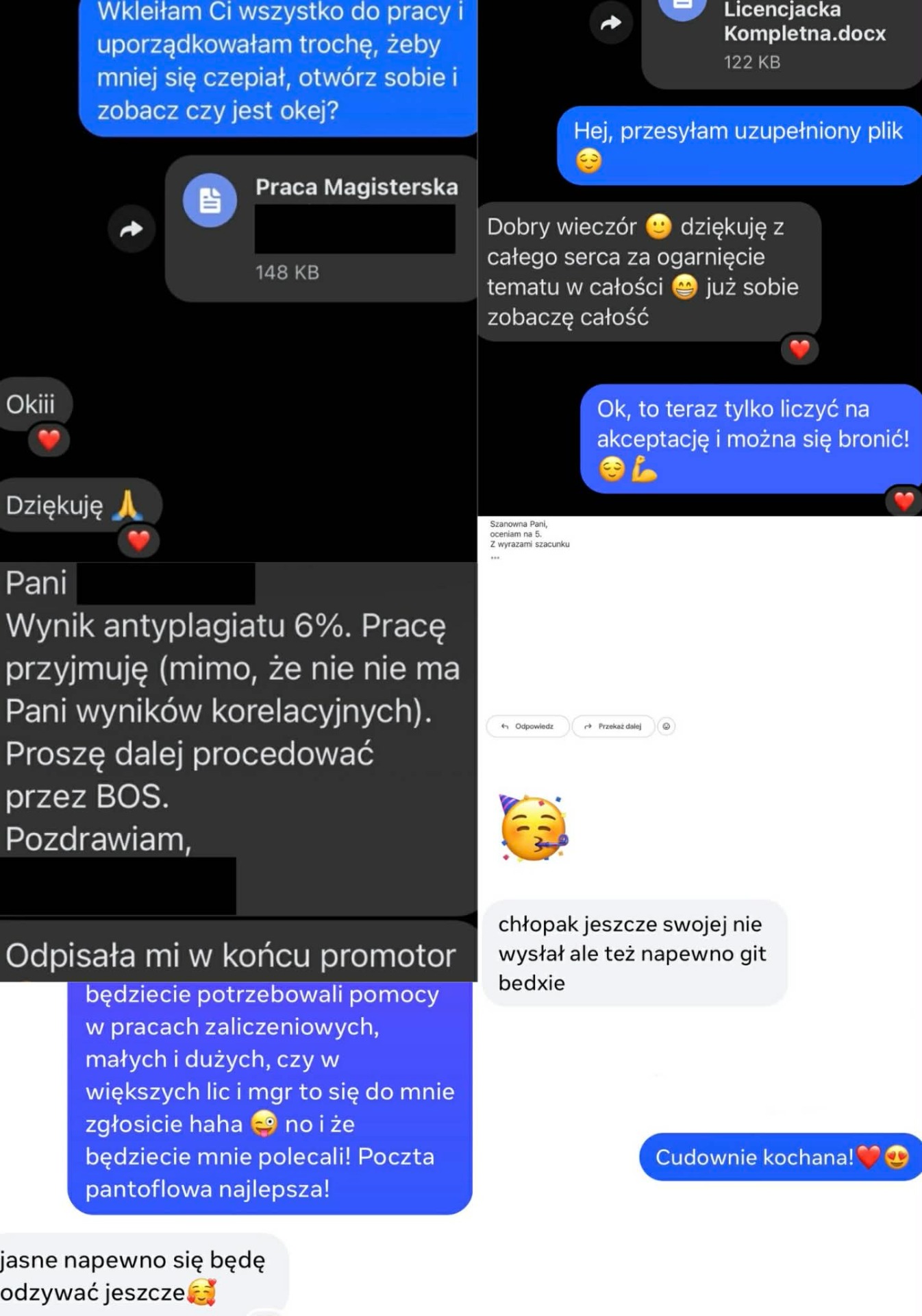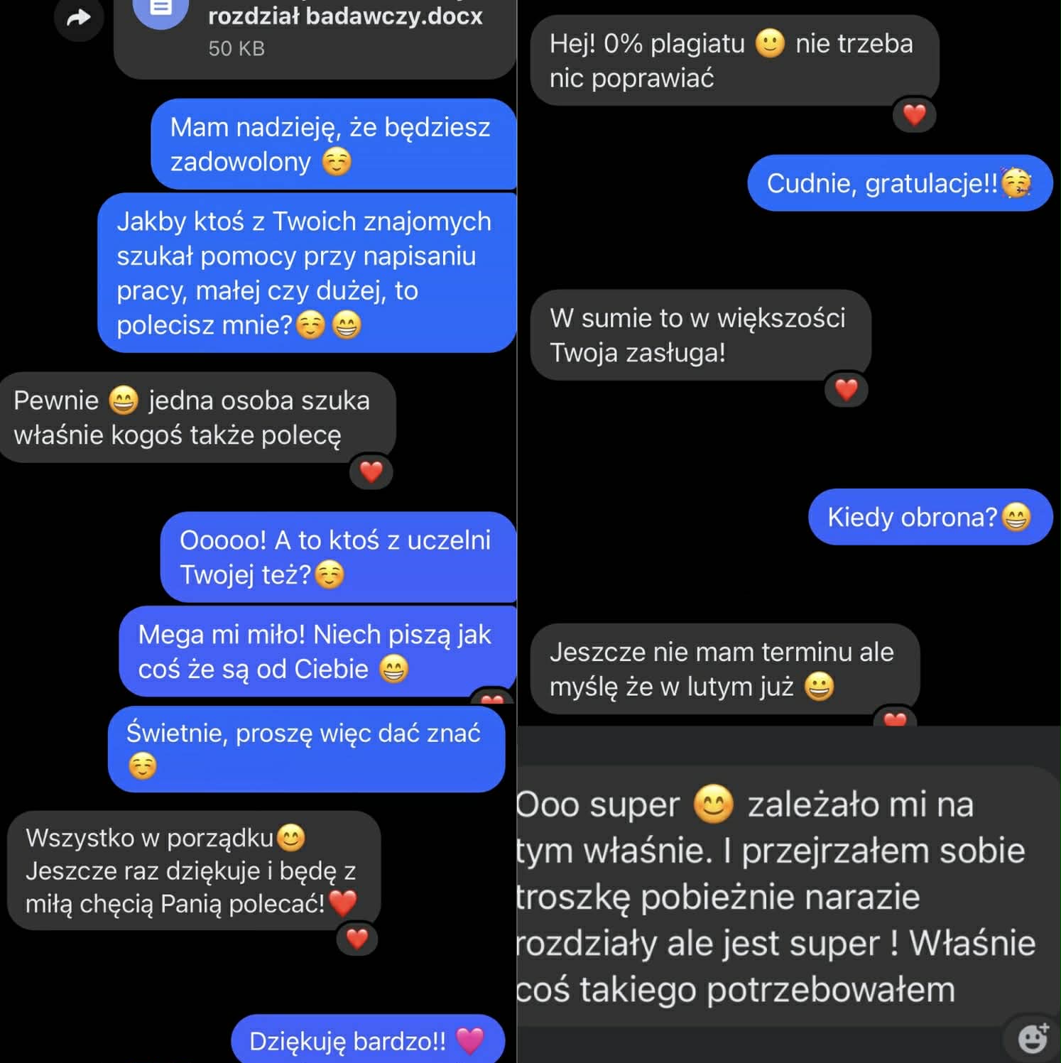 Opinie naszych klientów stanowią najważniejsze i najbardziej wiarygodne potwierdzenie jakości usług, które oferujemy. W tej zakładce prezentujemy autentyczne opinie studentów oraz przykładowe screeny rozmów z osobami, które zdecydowały się skorzystać z naszego wsparcia. Są to rzeczywiste relacje ze zrealizowanych współprac, pokazujące realne efekty, zadowolenie oraz spokój, jaki daje profesjonalna i rzetelna pomoc w pisaniu prac. Każde zlecenie realizujemy z dbałością o szczegóły, zgodność z wymogami uczelnianymi oraz oczekiwania promotora. Opinie te potwierdzają nie tylko wysoką jakość przygotowywanych tekstów, ale również sprawny kontakt, jasne zasady współpracy i pełne zaangażowanie naszego zespołu na każdym etapie realizacji. Każda opinia jest efektem uczciwej, terminowej i indywidualnej współpracy, opartej na zaufaniu, dyskrecji i profesjonalizmie. Pozytywne rekomendacje naszych klientów są dla nas największą motywacją do dalszego rozwoju oraz stałego podnoszenia standardów usług.